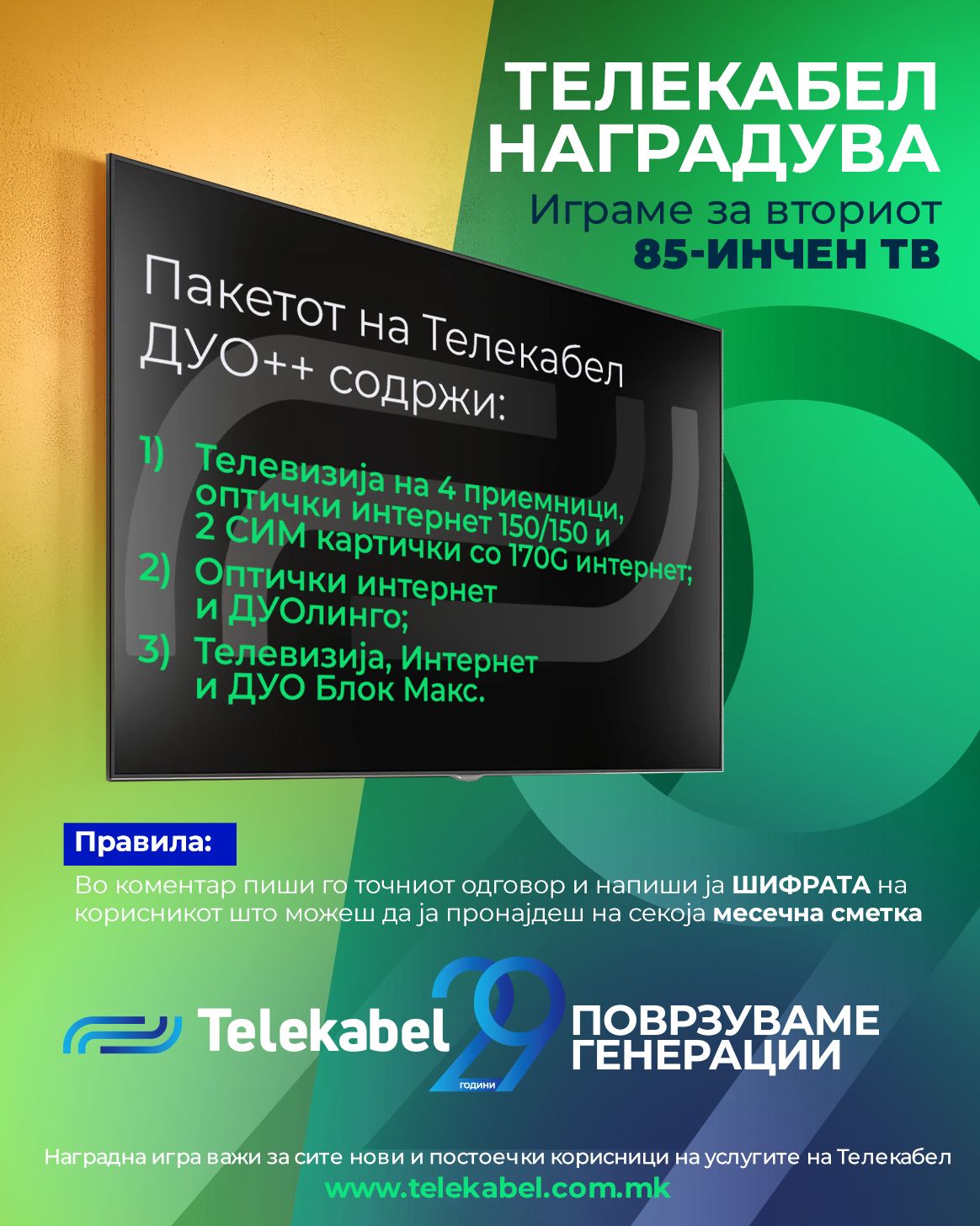 👉 Сè што треба да направиш е да одговориш точно на прашањето:❓ Што содржи пакетот M++?1️⃣ Основен пакет + 10GB2️⃣ Основен пакет + 50GB3️⃣ Основен пакет + 150GB 📲 Испрати го бројот 1, 2 или 3 на телефонскиот број 📞 74 74 74 и влези во извлекувањето за најновиот iPhone! 🗓️ Наградната игра трае до:…